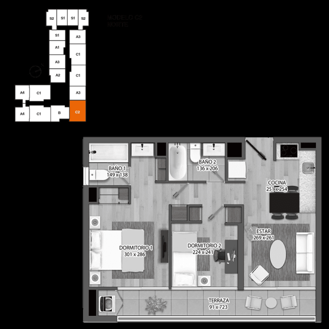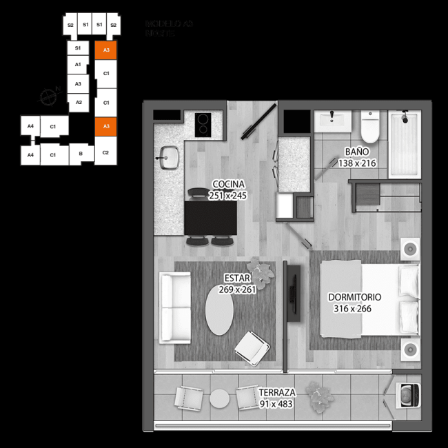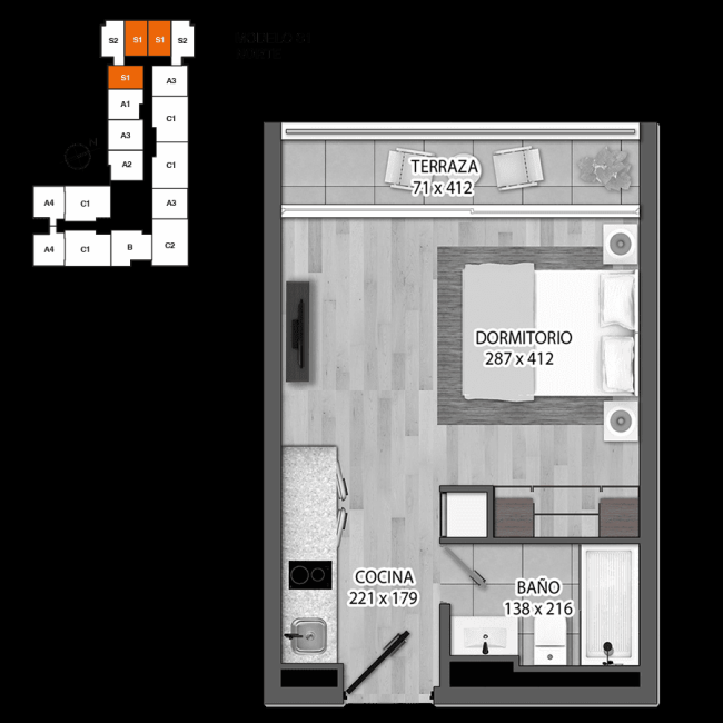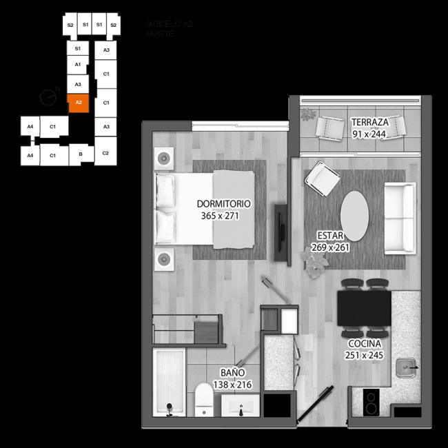 departamentos 35,65 m2 a 28.52 m2
