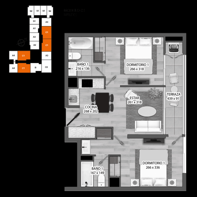 • Dormitorios : 1 dormitorio
